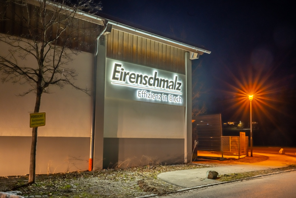 Acrylbuchstaben rückleuchtend Firmeneingang Nacht