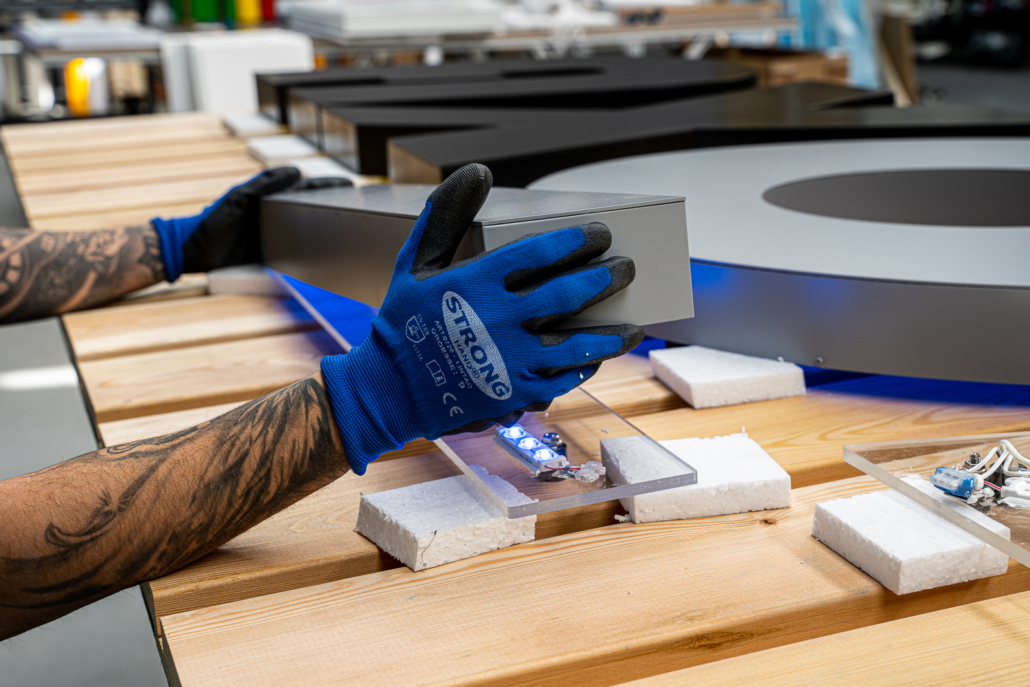 Wir bestücken die Acryl-Buchstaben mit hochwertigen LED Modulen.