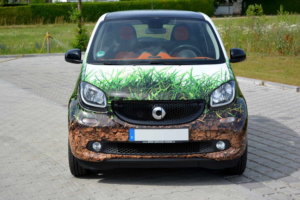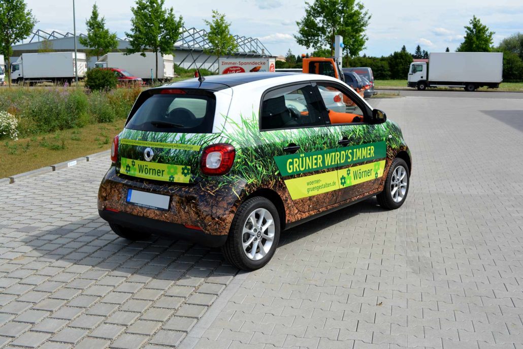 Mit unserem digitalen Großformatdrucker erstellten wir die Folien. Unsere Werbetechniker passen die die großen Druckbahnen mittels Heißluft auf das Auto an und kaschieren anschließend die Folien.