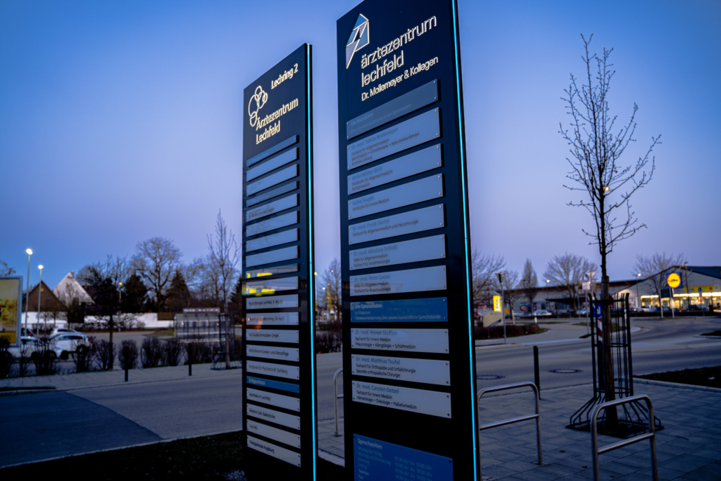 Um genau diese dezente Beleuchtung für Ihr Logo zu kreieren, empfehlen wir Ihnen in erster Linie rückleuchtende LED Acrylbuchstaben. Durch die indirekte Beleuchtung schaffen sie ein edles Gesamtbild, das sich elegant in seine Umgebung einfügt. So entsteht ein passendes Schild für Ärztinnen und Ärzte. Als Alternative könnten auch seitlich leuchtende Acrylbuchstaben genutzt werden, die bereits über etwas mehr Strahlkraft verfügen. Einzig und allein frontleuchtende LED Logos sind für Arztpraxen nicht zu empfehlen. Diese wirken deutlich zu plakativ und werblich. Die jeweiligen Kosten, die mit der einen oder anderen Bauweise verbunden sind, können Sie ganz leicht auf unserer Webseite kalkulieren.