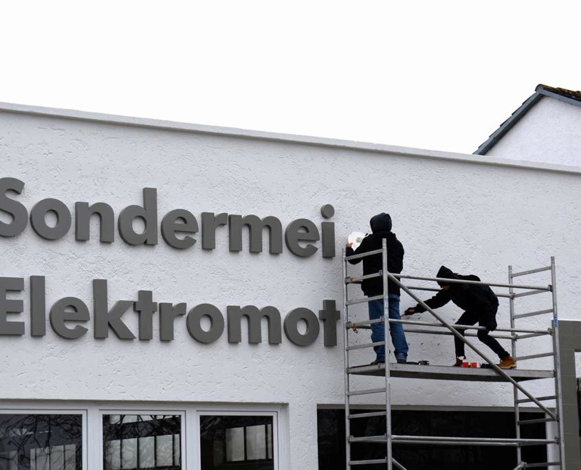 Montage der Fassadenbeschriftung