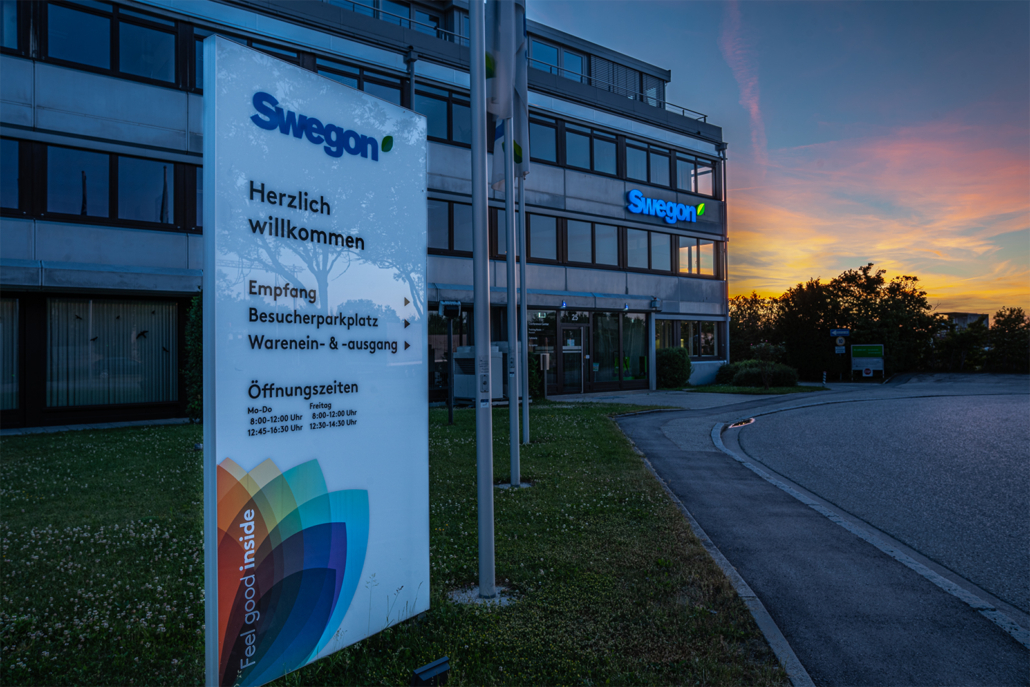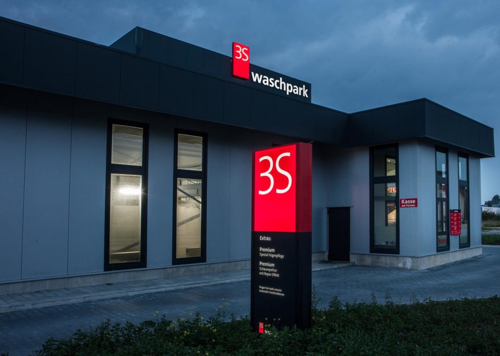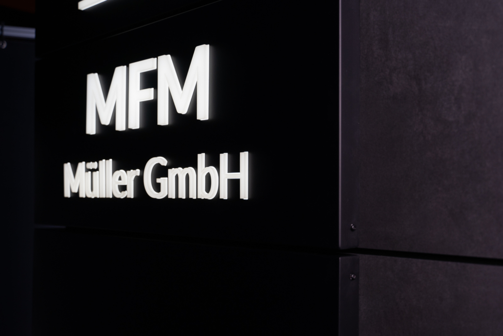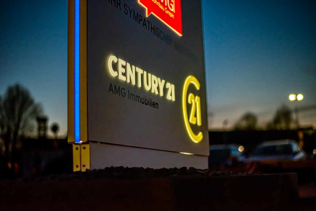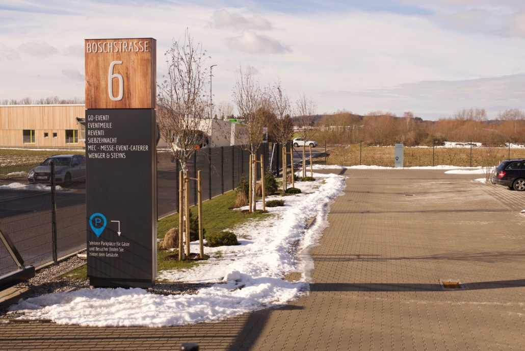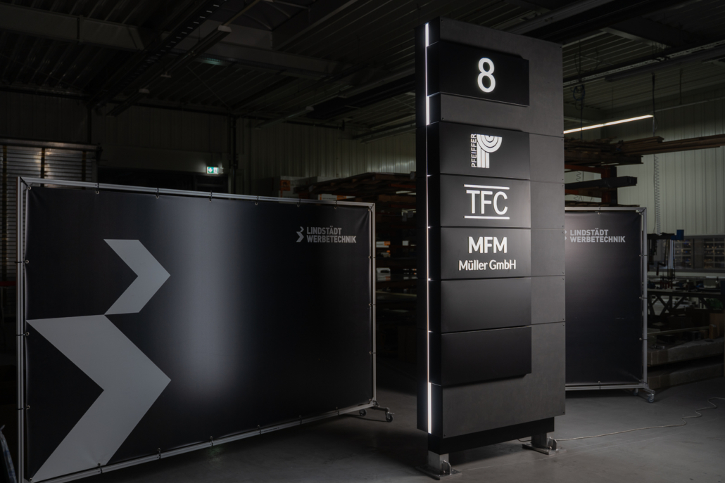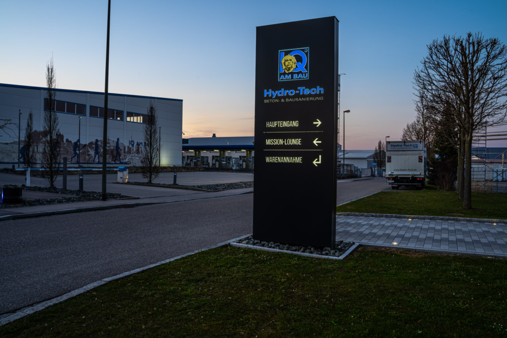 - Fassadenplatten der Werbepylonen stimmen mit Firmenfassade überein.